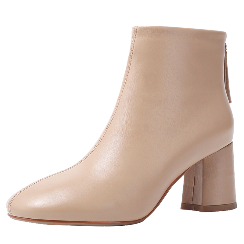 Short boot ladies spring autumn single boots 2021 new round head genuine leather rear pull chain short cylinder coarse heel Martin boot high heel boot child