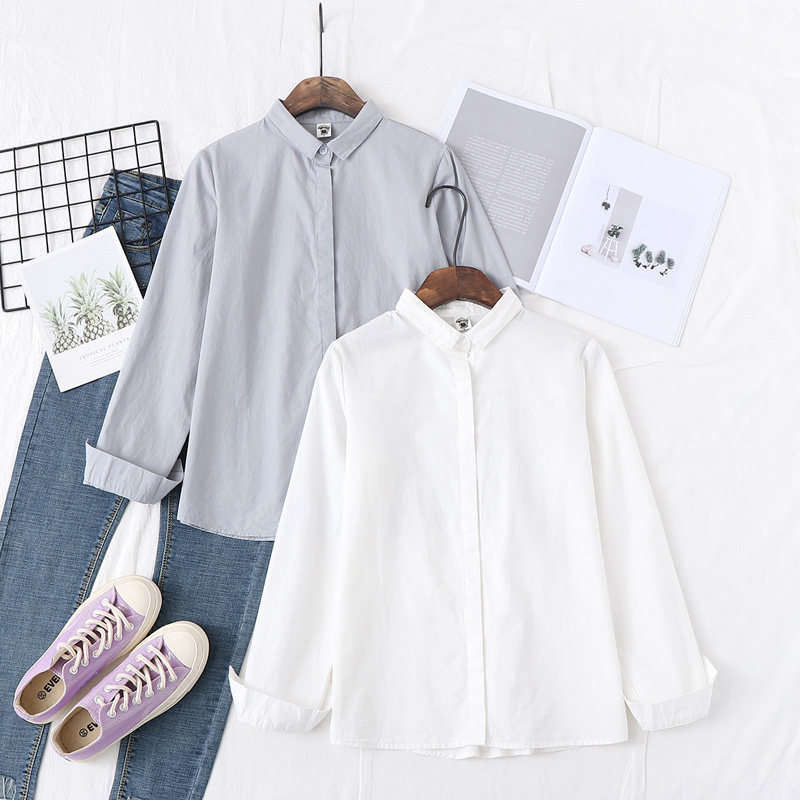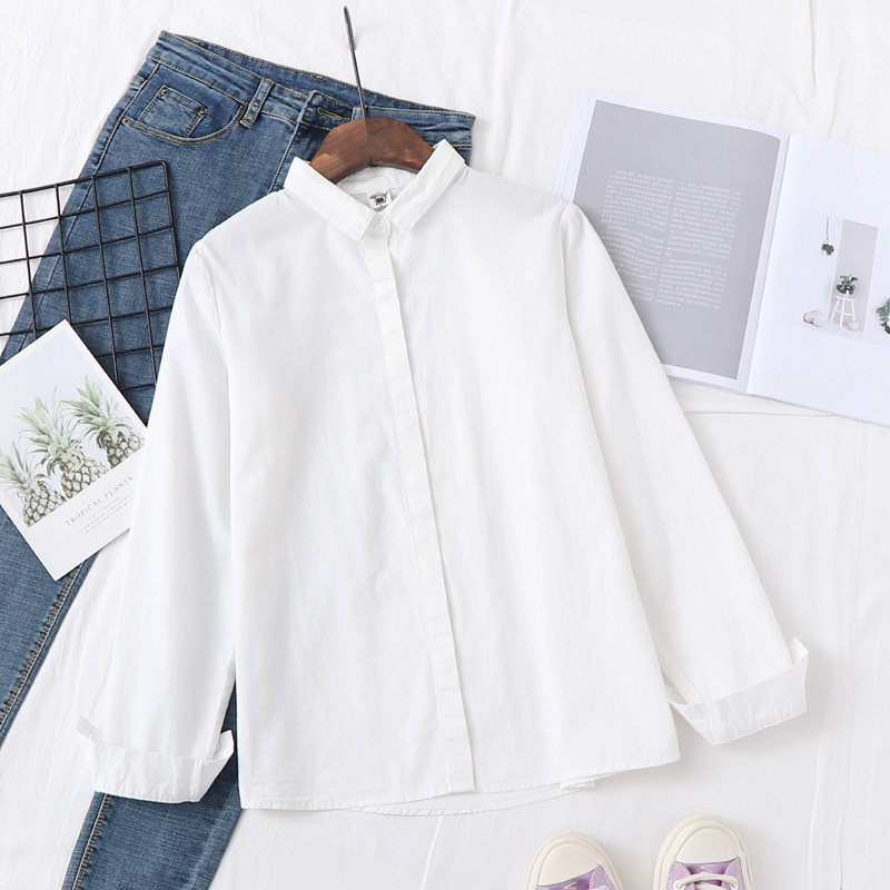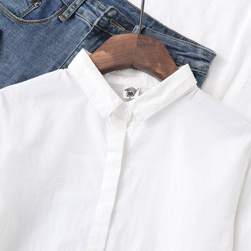 White Shirt Woman Spring Dress New Little Fresher 100 Hitch Pure Cotton Girl Shirt Tip Dark sleeve Long student hit undershirt