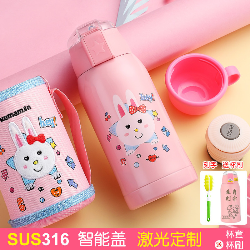 Pink rabbit (children's 316 smart thermos cup)lettering cup brush