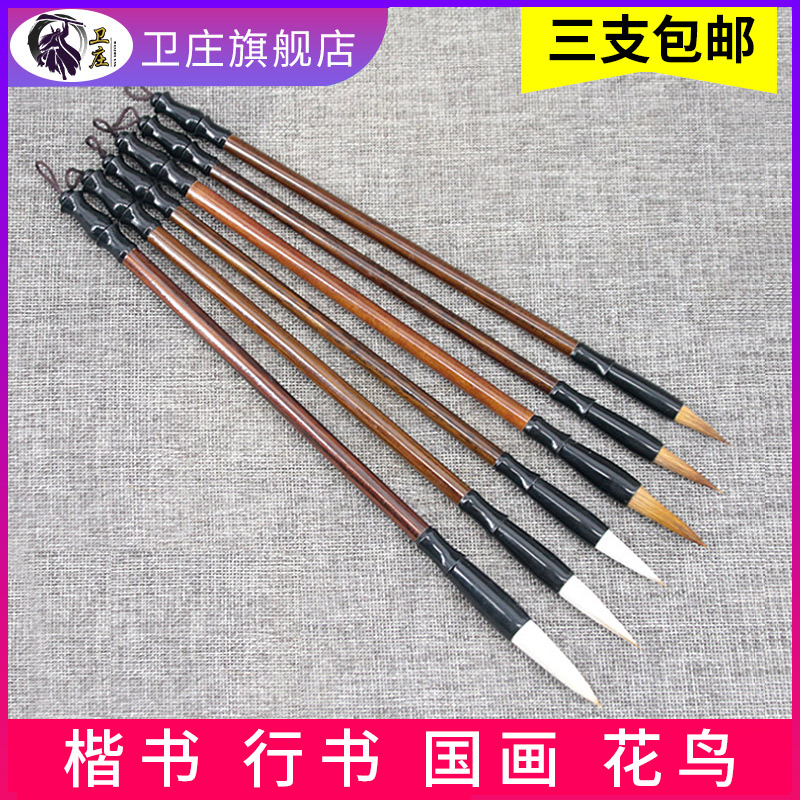 Weizhuang wolf and milli brush set solid wood pole beginner practice calligraphy large, medium and small kai bamboo pole baiyun brush student practice word beginner primary school student Chinese painting studio four treasures Kai shu brush