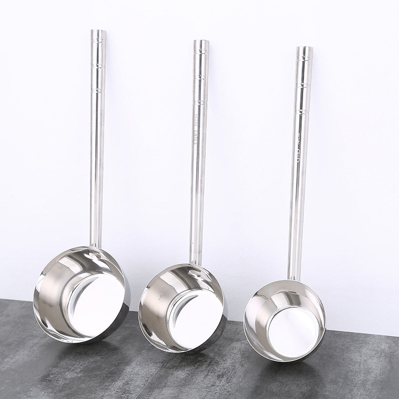 Stainless steel water spoon lengthened kitchen water ladle thickened water scoop with long handle water-pyo water shell can be set with handle length