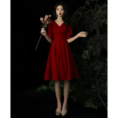 Wine toast bride 2021 new winter long sleeve wedding evening dress dress small man can wear Women