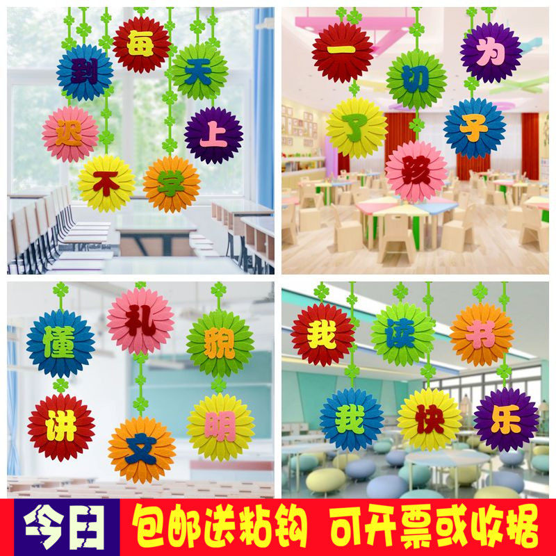 Yellow, red, green, blue, and pink sunflowers. Welcome to a set of four-leaf clover sunflowers. Study hard. Go to the classroom every day without making noise (double-sided) Candy bars, I am reading, I am happy