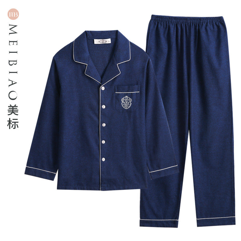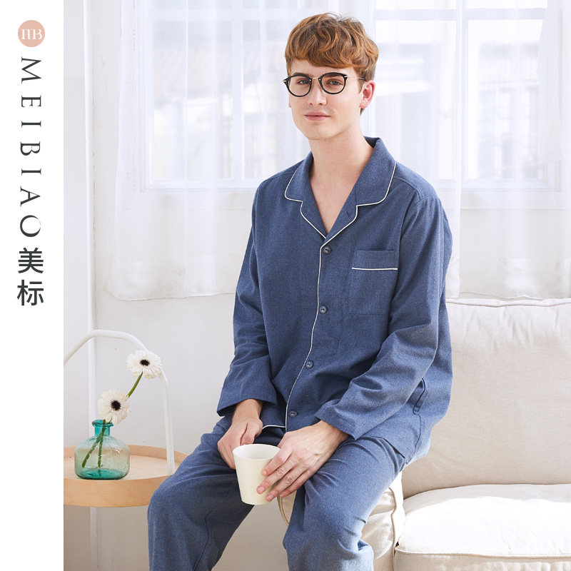 American long-sleeved cotton pajamas two-piece suit men's spring and autumn cotton simple casual can be worn outside home clothes winter