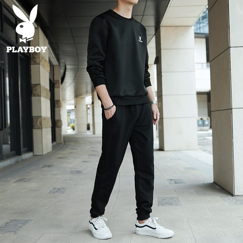 Playboy casual suit men's spring and autumn new men's fashion trend with handsome sweatpants thick cotton T-shirt men's set