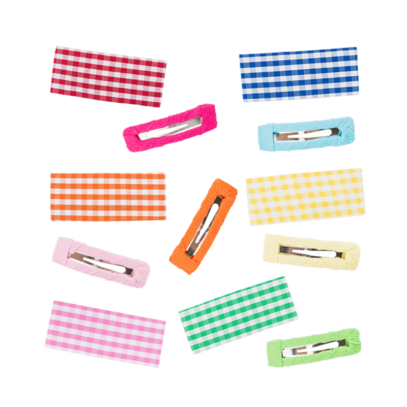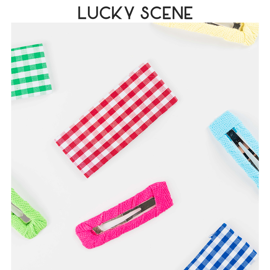 (Auspicious Props) Colored Plaid Hair Accessories Korean Children's Fabric Hair Clip Set Female Bao Liu Hai Clip Parent-child
