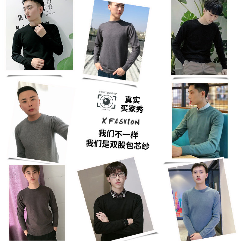 Round-collar undershirt line clothes 2023 autumn and winter new trends Body Knit Cardiovert-weaters Long sleeves Hooded Sweater Manhood-Taobao
