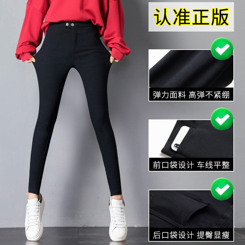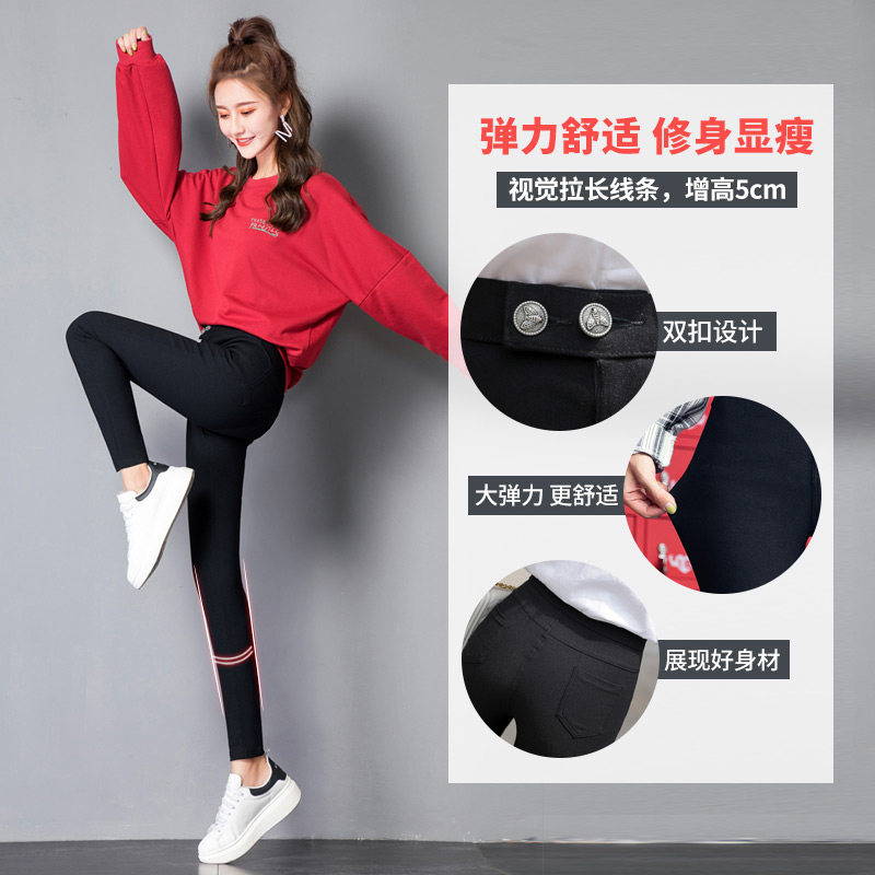 200 pounds of small black pants wear small black feet with thin high waist large size fat mm pants in spring and autumn