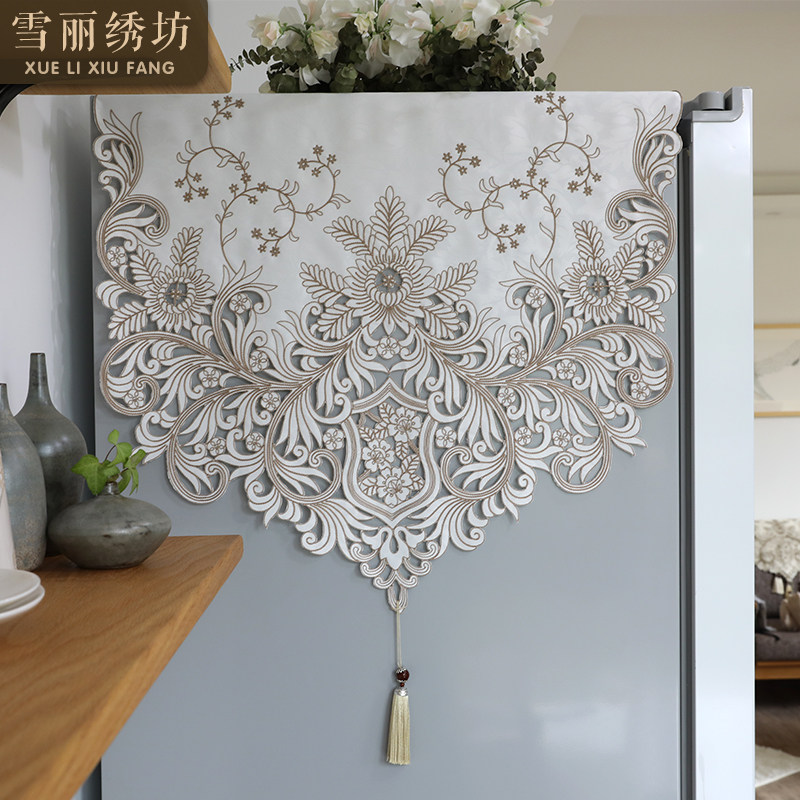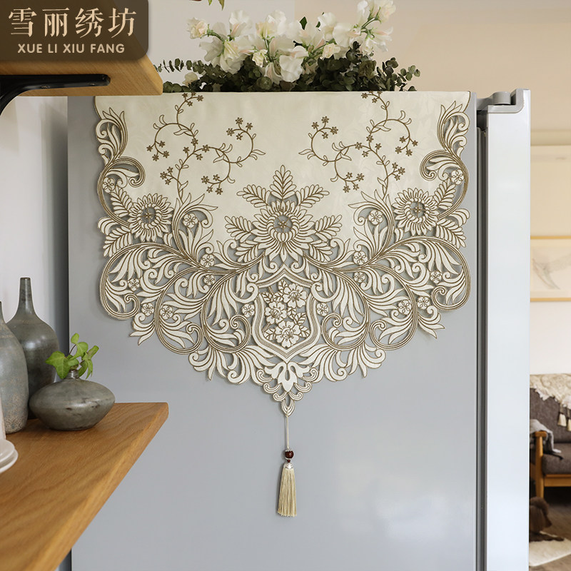 Refrigerator lid towel washing machine curtain single door to double door fabric embroidered dust cover Nordic Chinese starry night flowers