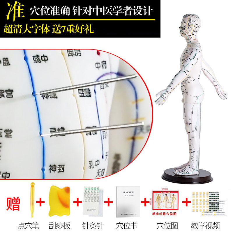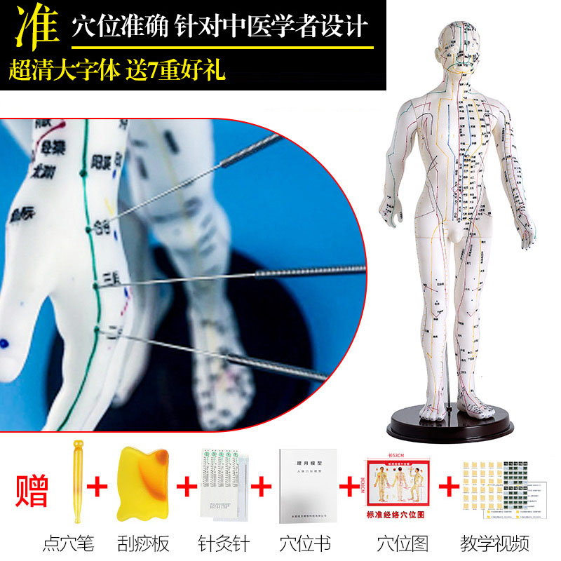 Acupuncture acupoint human body model traditional Chinese medicine men and women whole body meridian small copper color people can prick needle human model small person figure silicone