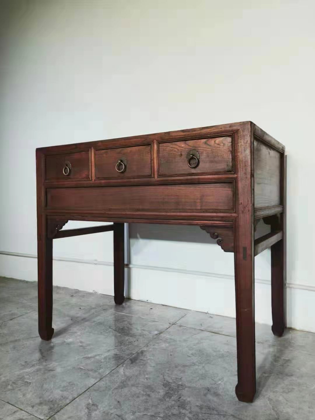Folk Old Objects Old Furniture Elm Wood Desk Three Pumping Table Desk Collection Use Pendulum Nostalgia