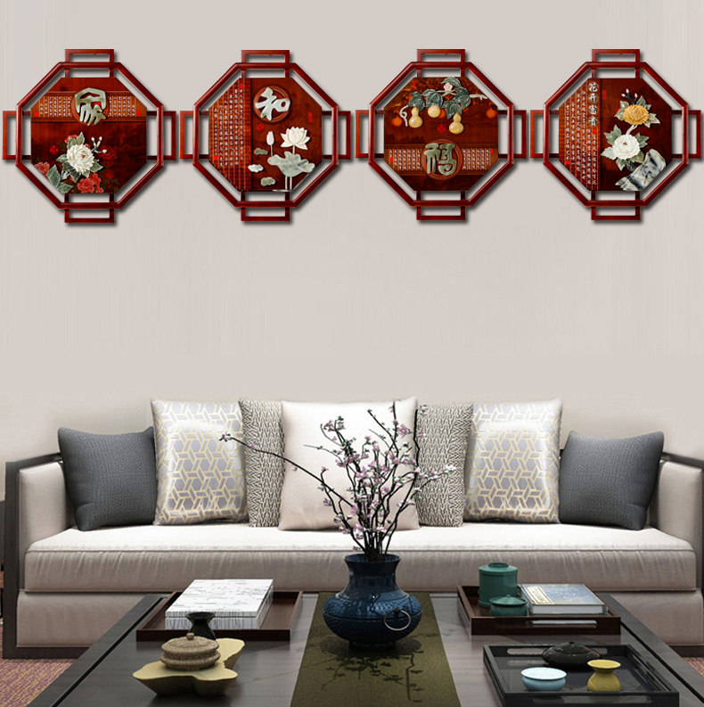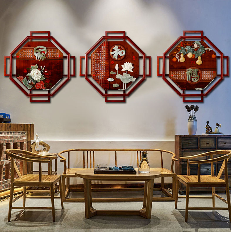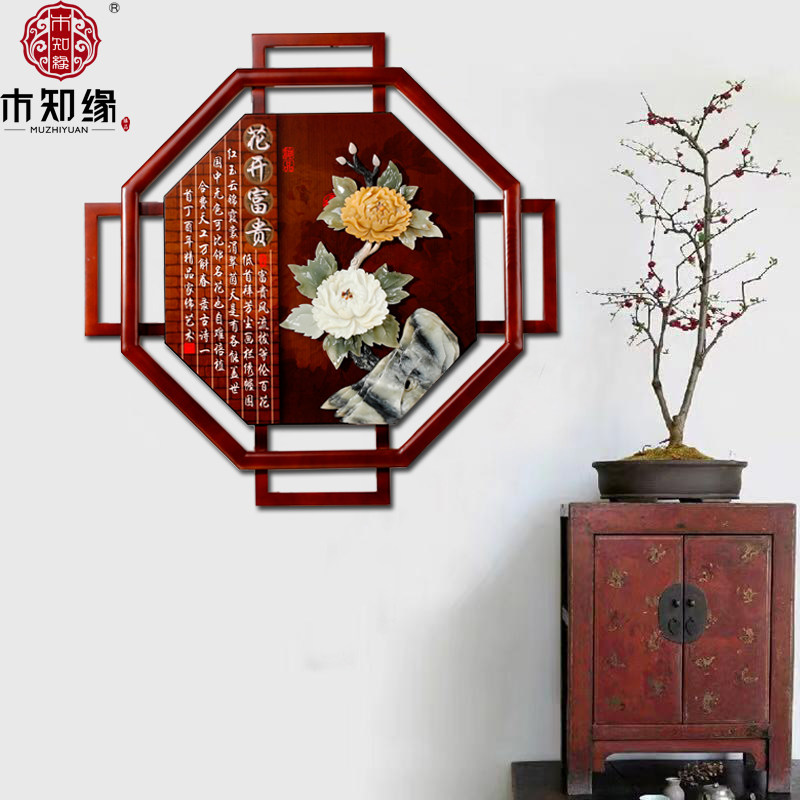 New Chinese solid wood jade carving hanging painting Into the corridor aisle entrance vertical version of the living room background 3D three-dimensional relief decoration