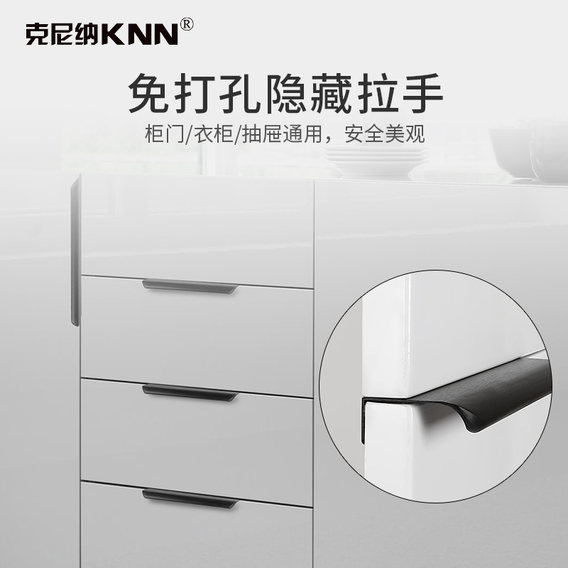 Invisible handle black non-perforated light luxury golden drawer dark handle modern minimalist wardrobe cabinet door handle