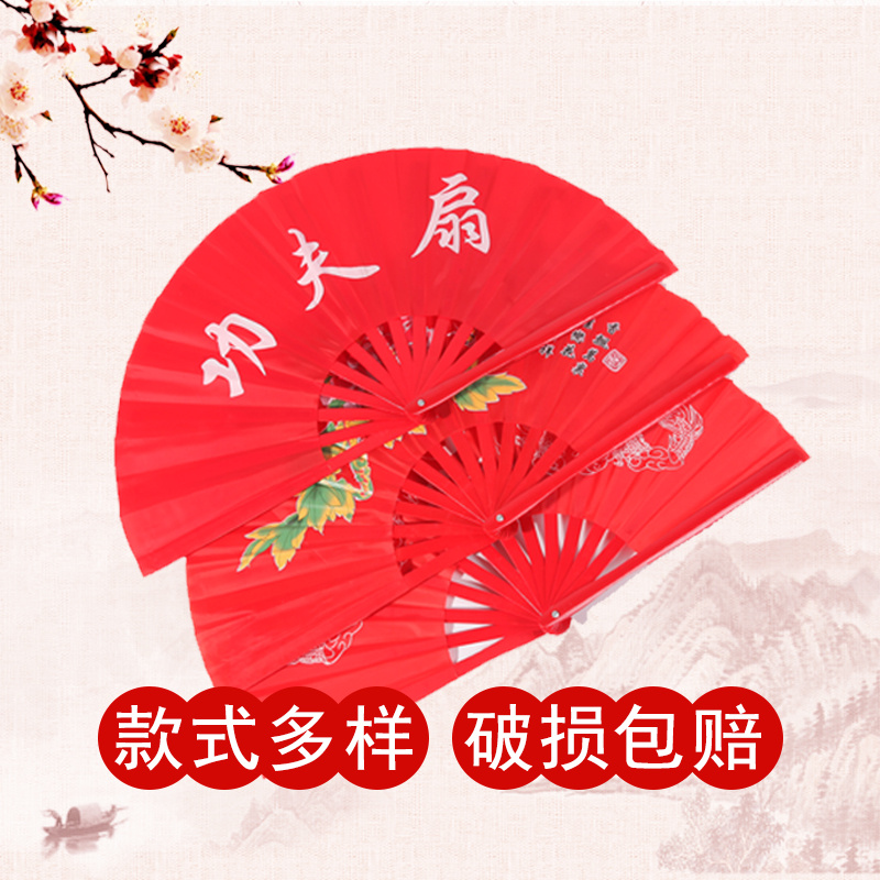 Tai Chi fan kung fu fan ringing fan children adult martial arts fan bamboo bone plastic customizable red dance fan