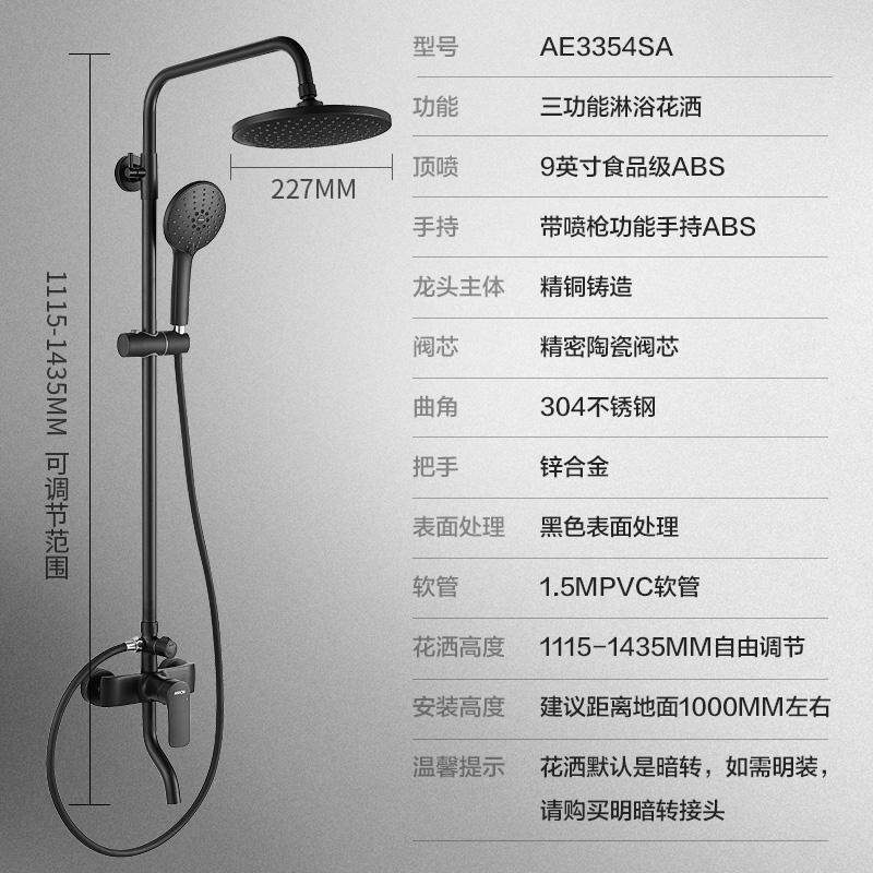 Black Simple Shower Head AE3201A Black German Red Dot Award AE3354SA Black Integrated Spray Gun Shower Head AE3401SA Black Square Thermostatic Shower AE3370SH