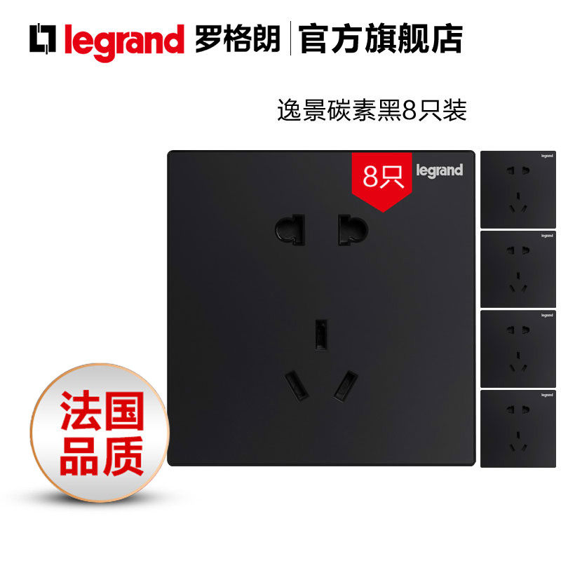 Legrand switch socket panel Yijing carbon black five-hole two-three plug-in 8-piece household wall power supply type 86