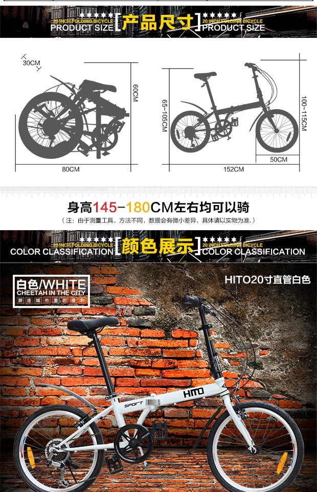 HITO brand 20 inch folding bicycle Ultra light portable men's and women's variable speed bicycle Lady student bicycle