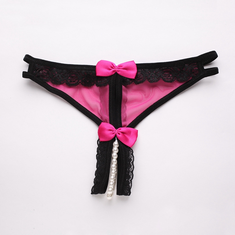 Sexy panties female pearl transparent opening massage typeface pants female feeling free from couples passion