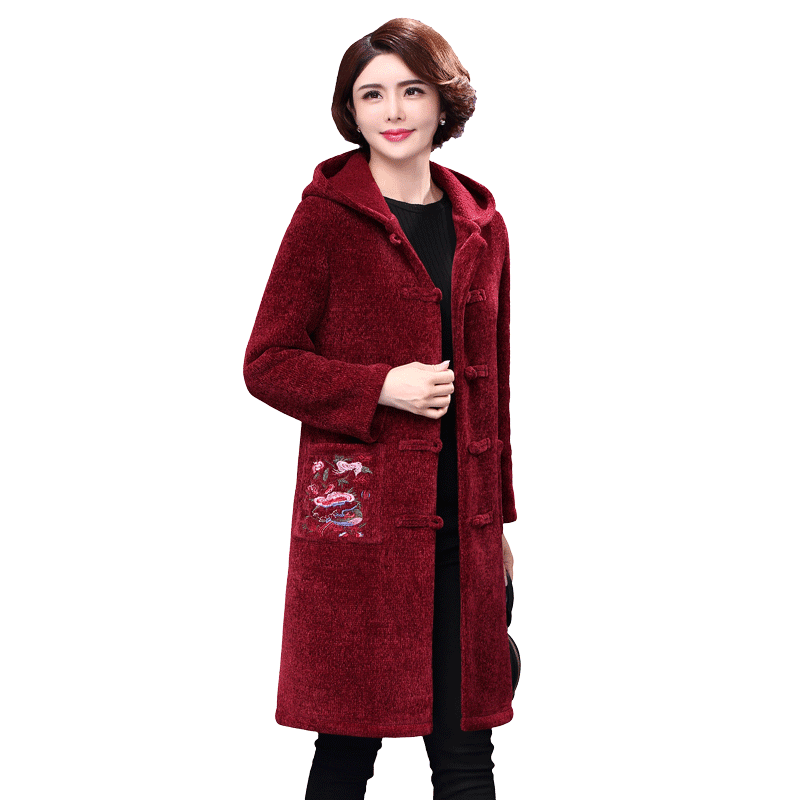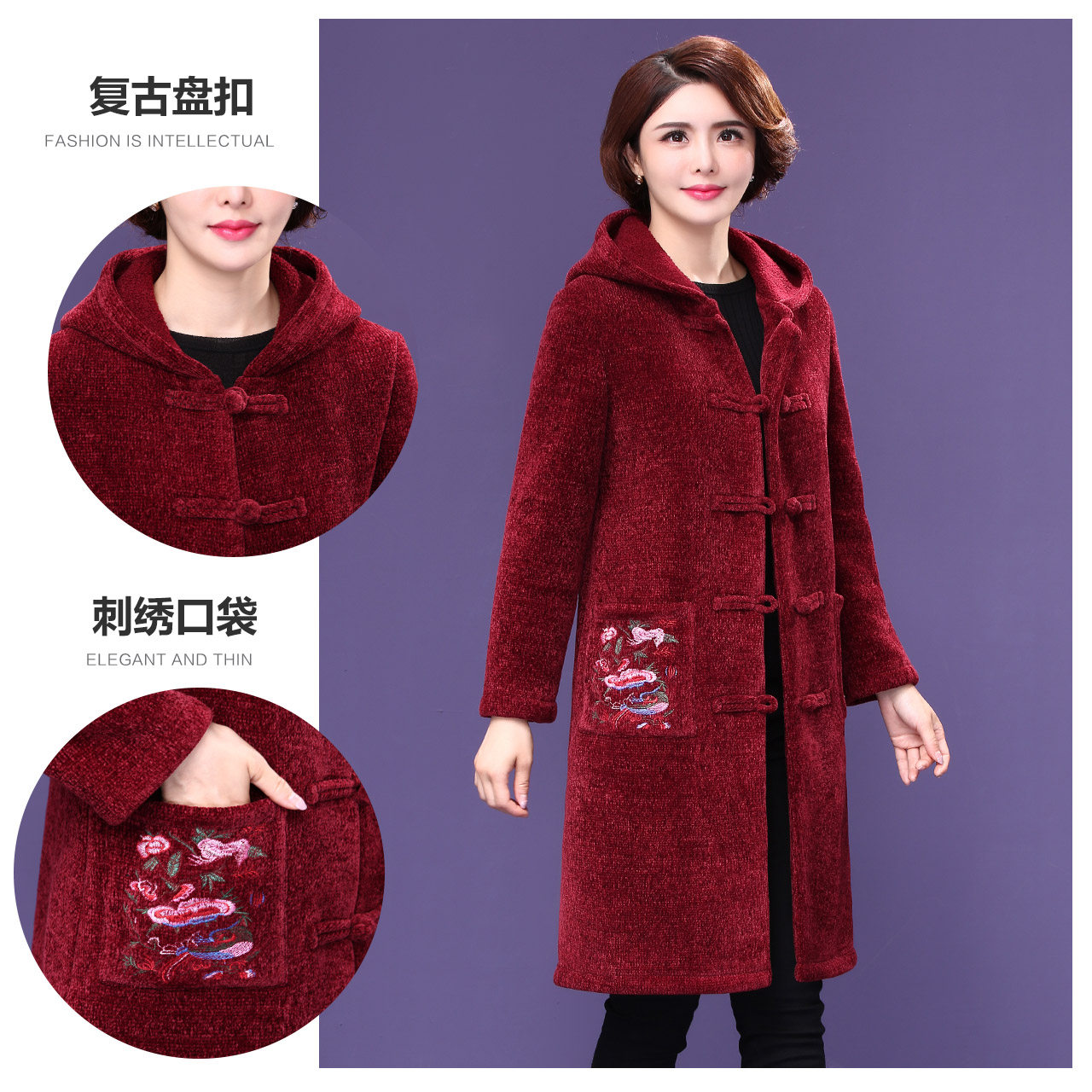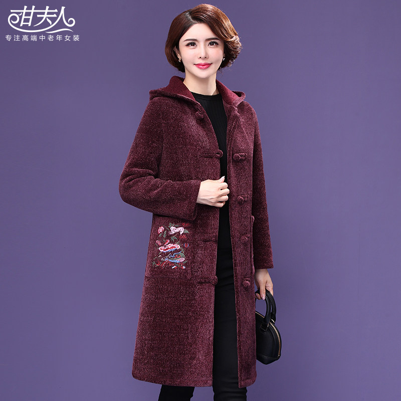 Lady Gale middle aged woman 2021 autumn winter clothing new embroidered light core suede jacket with long version Mom clothes blouse