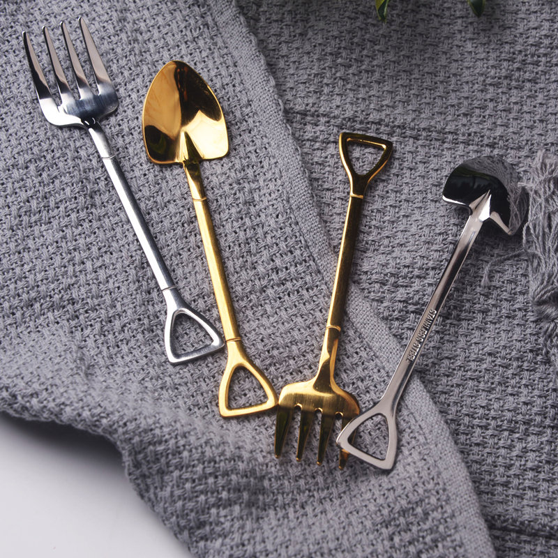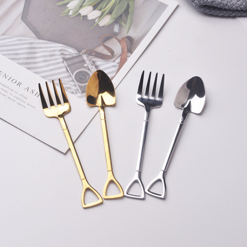 Silver shovel type small fruit fork silver color shovel type small sweet spoons gold shovel type small fruit fork gold shovel type small sweet spoons