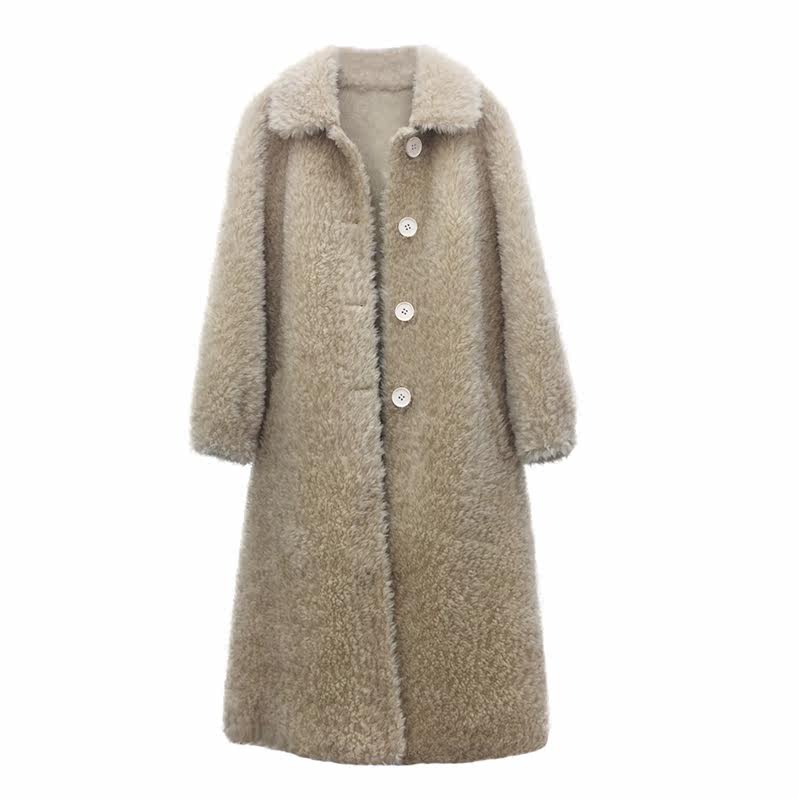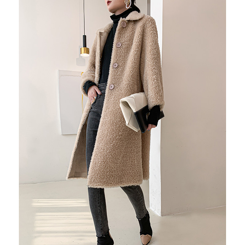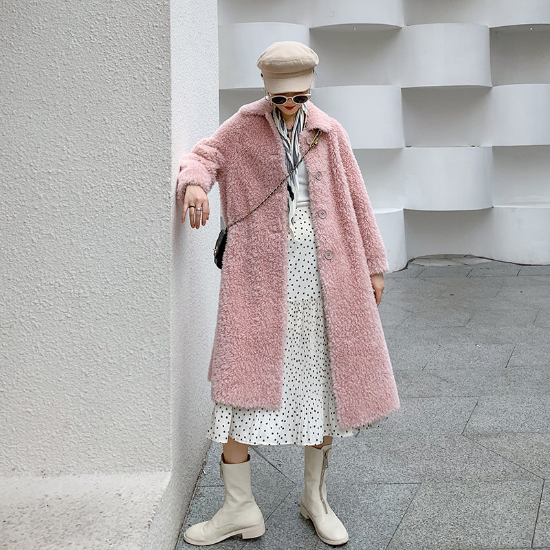 2020 new Haining sheep shearing women's medium and long version of lamb fur fur one-piece coat windbreaker thin fur coat