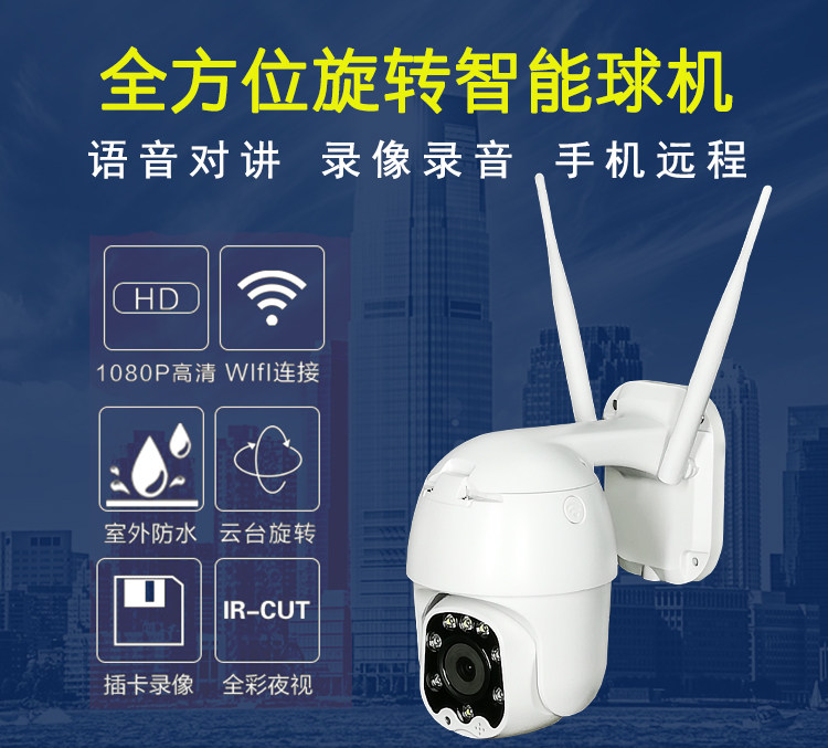 Wireless camera wifi mobile phone remote home day and night full color outdoor network HD automatic tracking and monitoring
