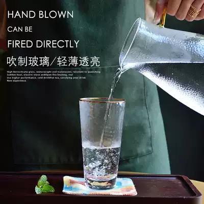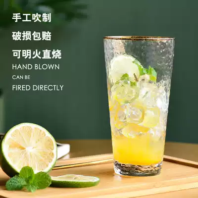 Hammered gold edge glass set Net red water cup female cute ins style Japanese home living room juice drink cup