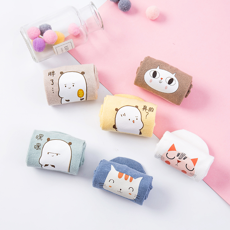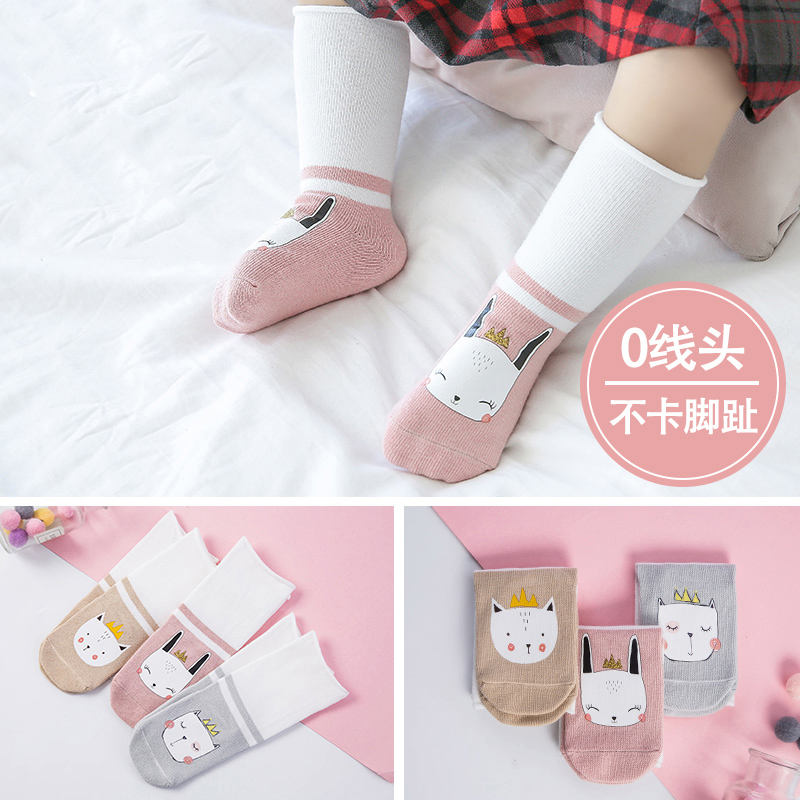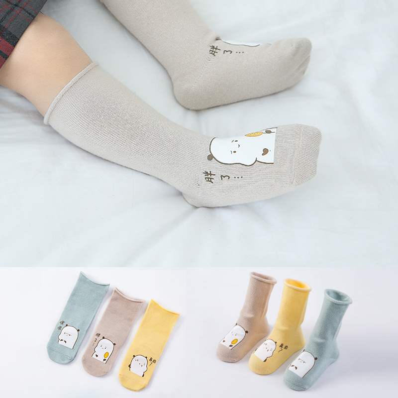 Newborn baby socks pure cotton spring and autumn high tube socks Middle tube baby 0-1 year old printing glue cute long tube loose socks