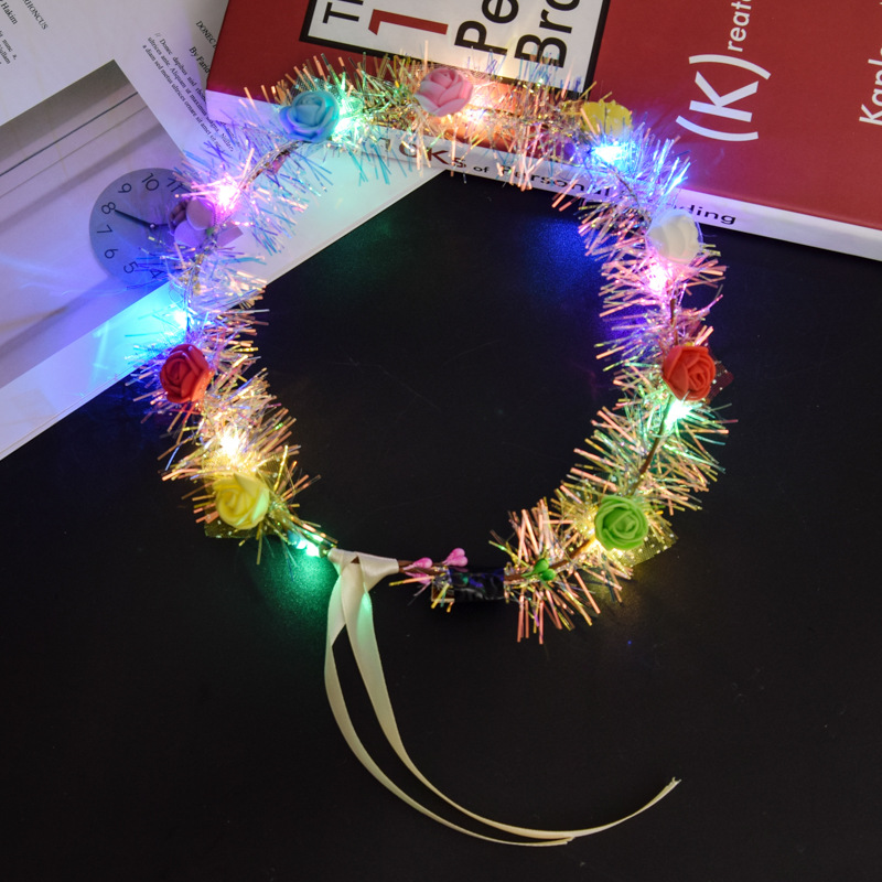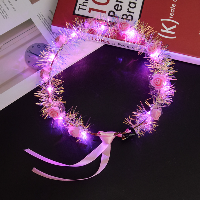 Luminous flower ring headgear Golden Silk Rabbit Ears Concert Props Creative Children with lamp Hoop Kindergarten Small Gifts
