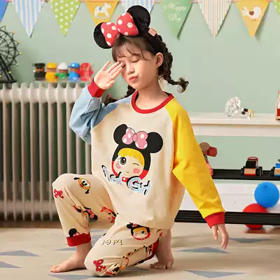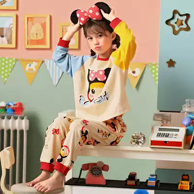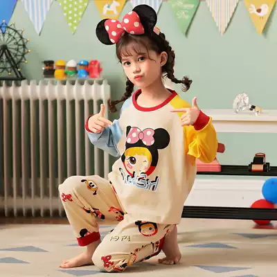 Girls ' pajamas Spring and autumn pure cotton long-sleeved thin suit Middle and large children's cute cartoon little girl home clothes