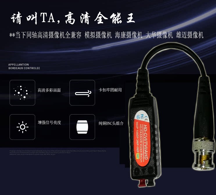 HD twisted pair transmitter AHD TVI CVI Dahua Hikvision network analog coaxial bnc to network cable connector