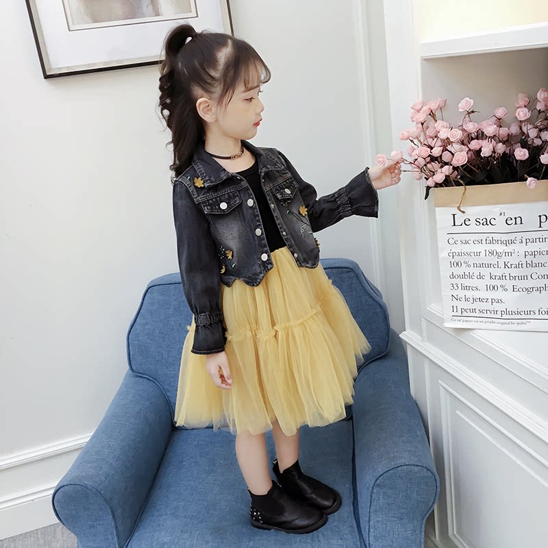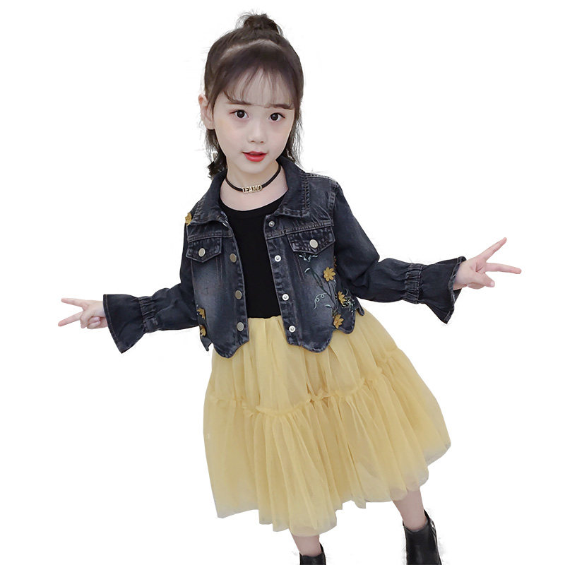 Girl Foreign Dress Kit 2022 New Spring Han Edition Children Denim Clothing Two Sets Fall Dress Trendy Jacket
