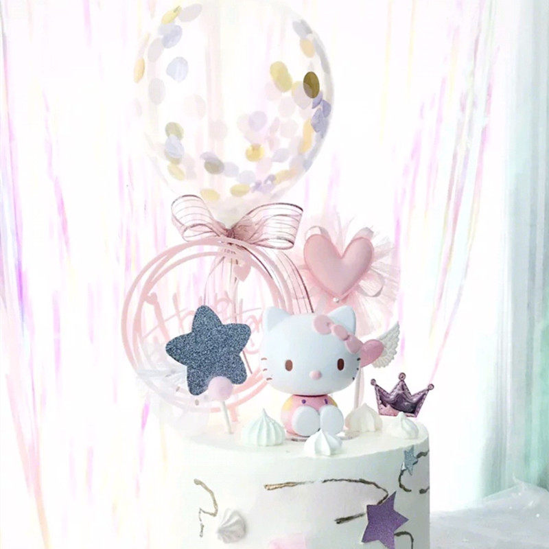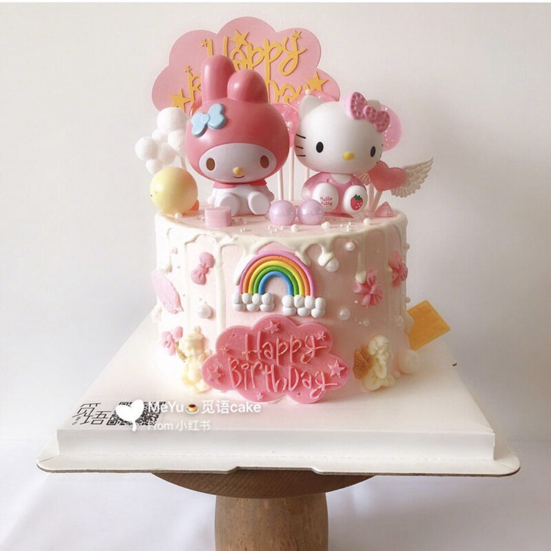 Birthday cake decoration pink rabbit ears KT melody doll zodiac rabbit KT cat ornament hairball arch