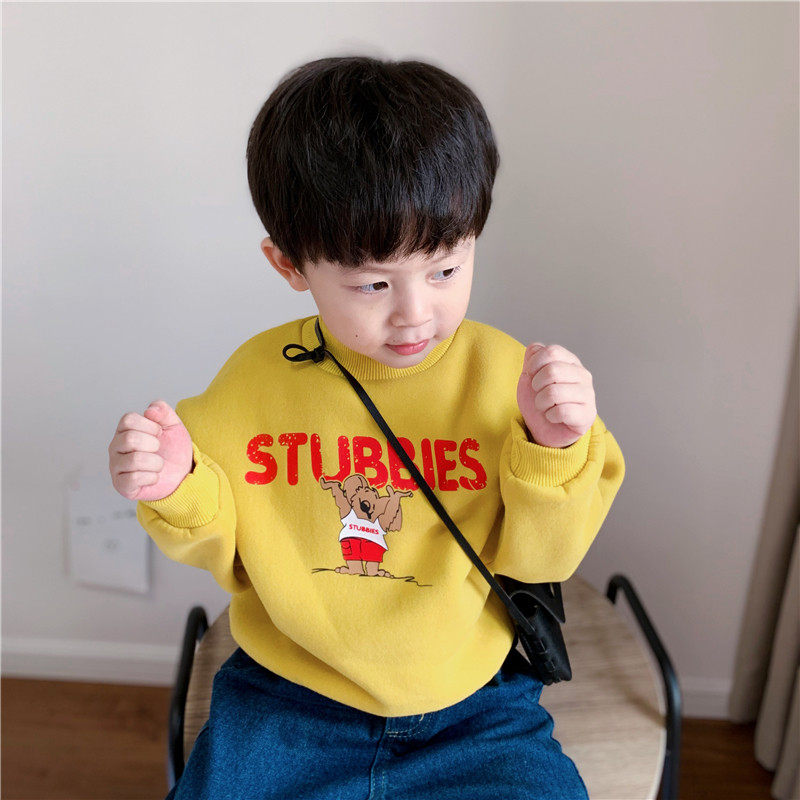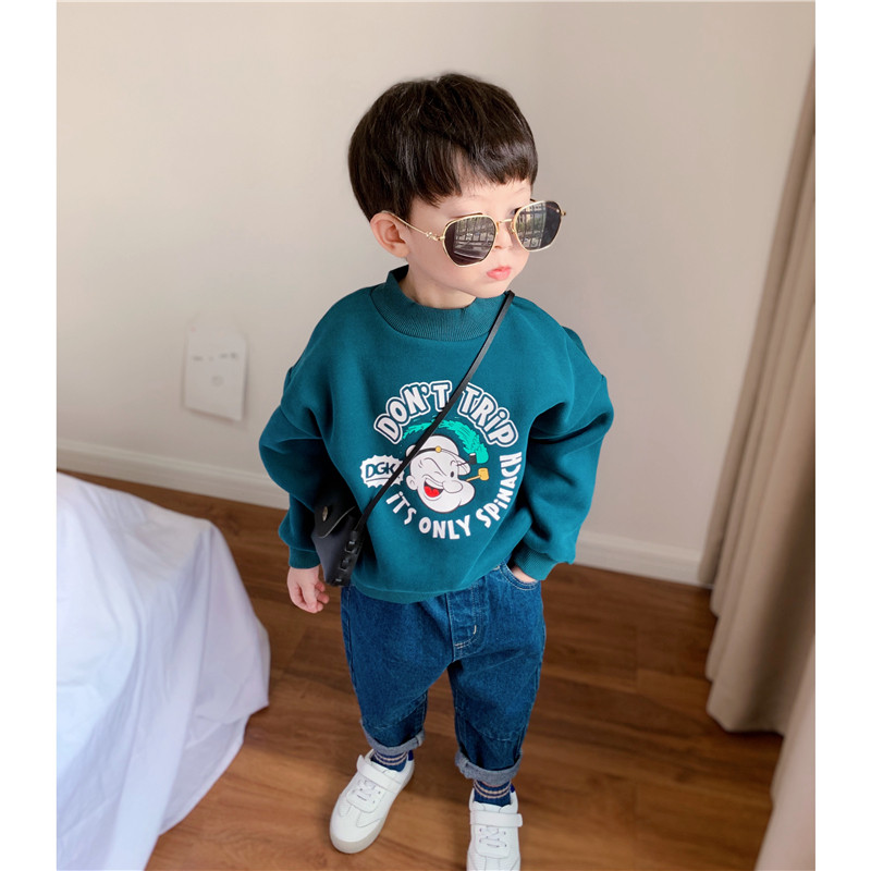 Tongtongma Boys and Girls Half Turtleneck Cotton Plus Velvet Cartoon Sweater Children's Tops Toddlers Casual Tops Autumn and Winter