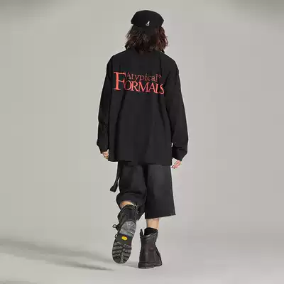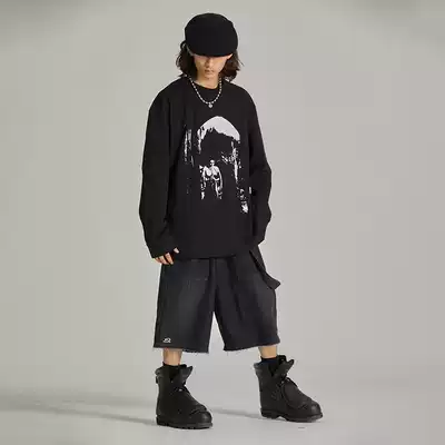 POH 19AW vampire print wash carbon black loose profile round neck long sleeve T-shirt men's trend coat tide