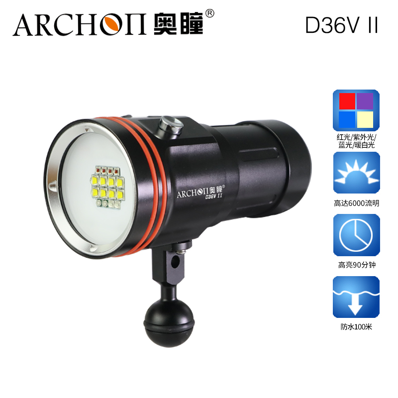 ARCHON Opupil D36V-II underwater photography Spotlight Film Red Light Purple Light 6000 Flow Ming Diving Flashlight