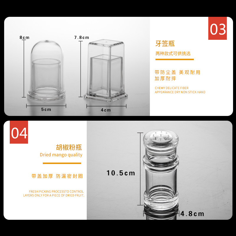 Large number oil bottle No. oil bottle small oil bottle Nine-hole seasoning tank round toothpick cylinder square toothpick cylinder large sugar cylinder (send spoon) small sugar cylinder (send spoon) oval depository round nursery tray