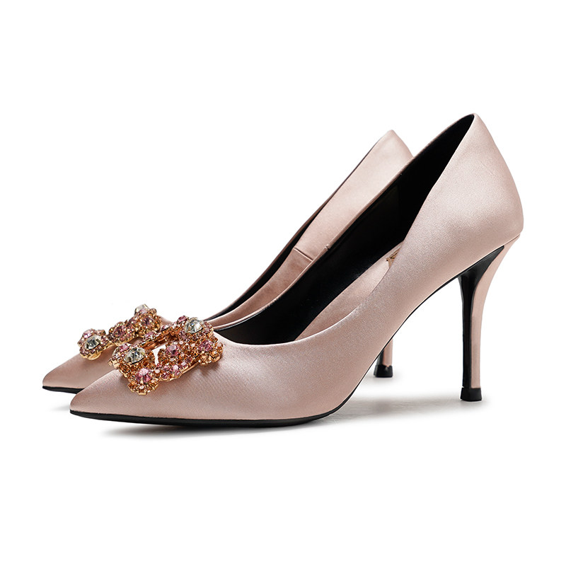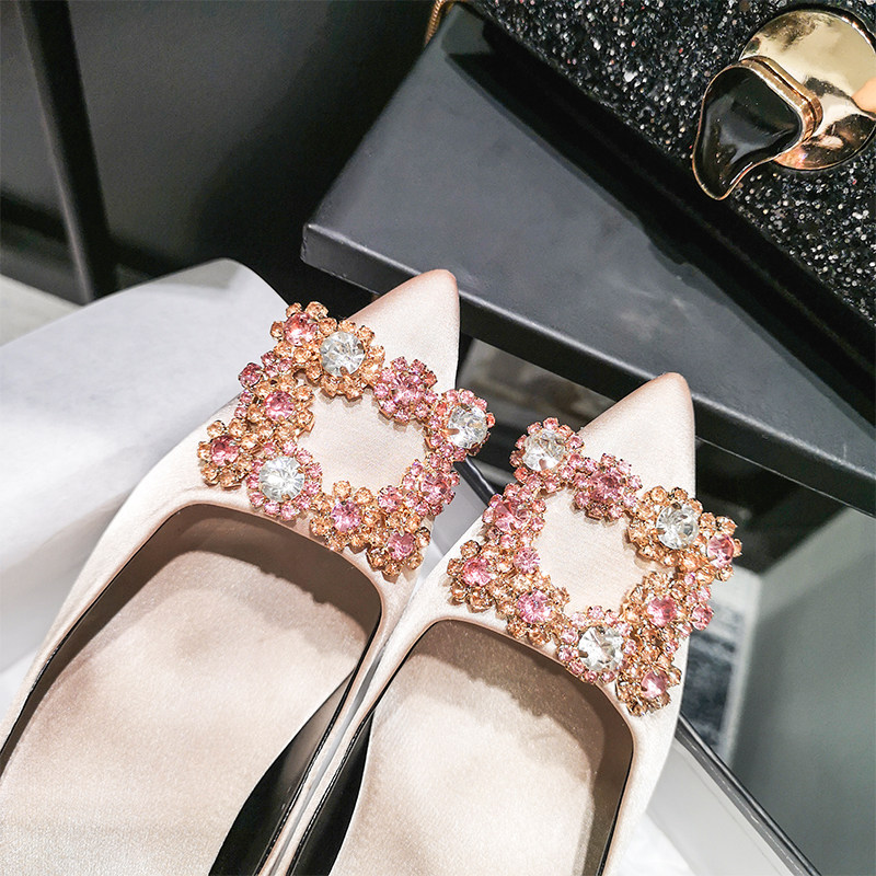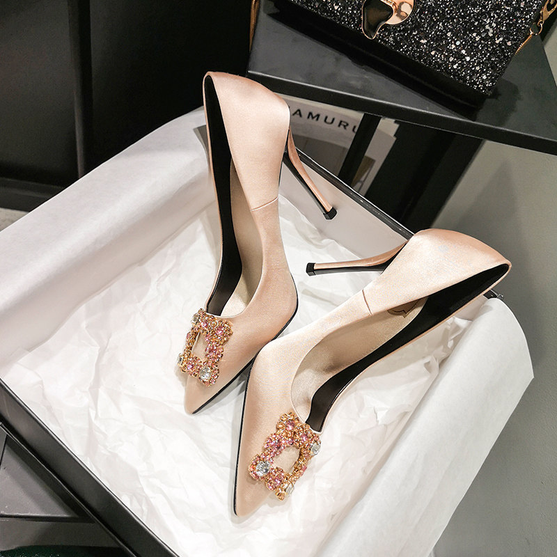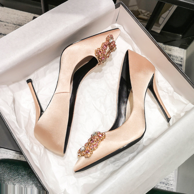 Satin Champagne High Heels Skin Heels RV Drill Draw Wedding Shoes Bride Shoes Wedding Shoes