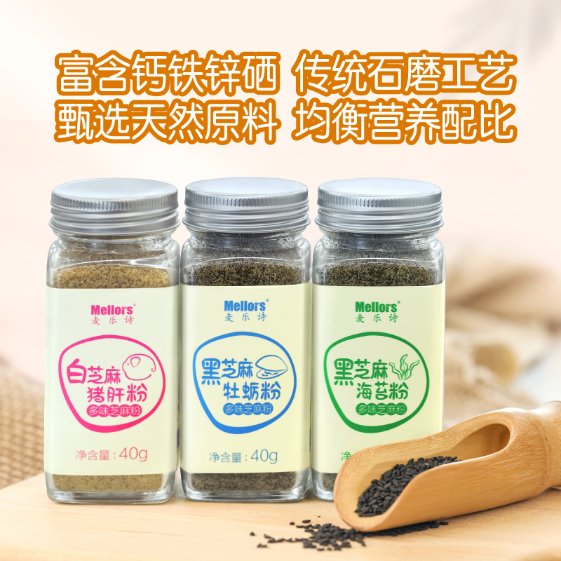 (Calcium) Black Sesame seafood shrimp powder (iron) white sesame pig liver powder (zinc) black sesame oyster powder (selenium) Black Sesame Sea moat powder (vitamin A) black sesame cod fish meal