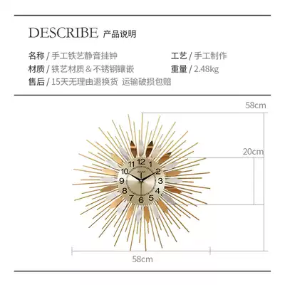Nordic light luxury atmosphere hanging watch art clock wall clock living room household personality creative American wall decoration clock
