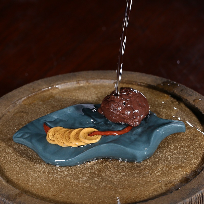 Original ore traditional tea pet Yixing famous hand-made purple sand lucky gold toad tea tray ornaments creative household tea set collection