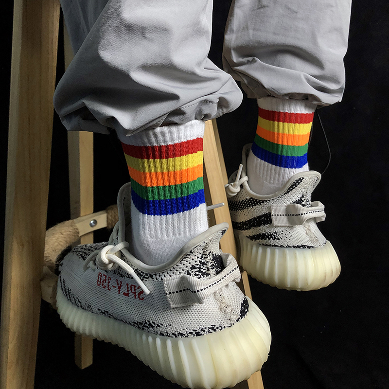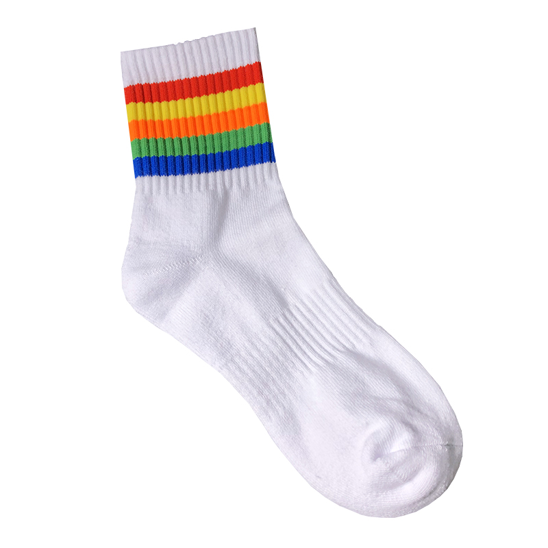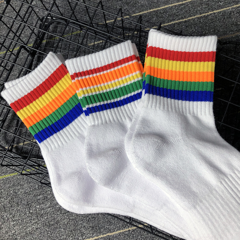 4 Double Loaded Spring Summer Rainbow Striped Towel Bottom Men Midcylinder Socks Male Movement Thickening minimalist pure cotton deodorant