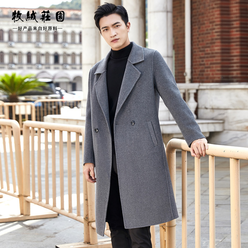 Pure wool bifacial, long version of men's medium long version over kneecap bifacial cashmere jacket suit collar Mao, windsuit