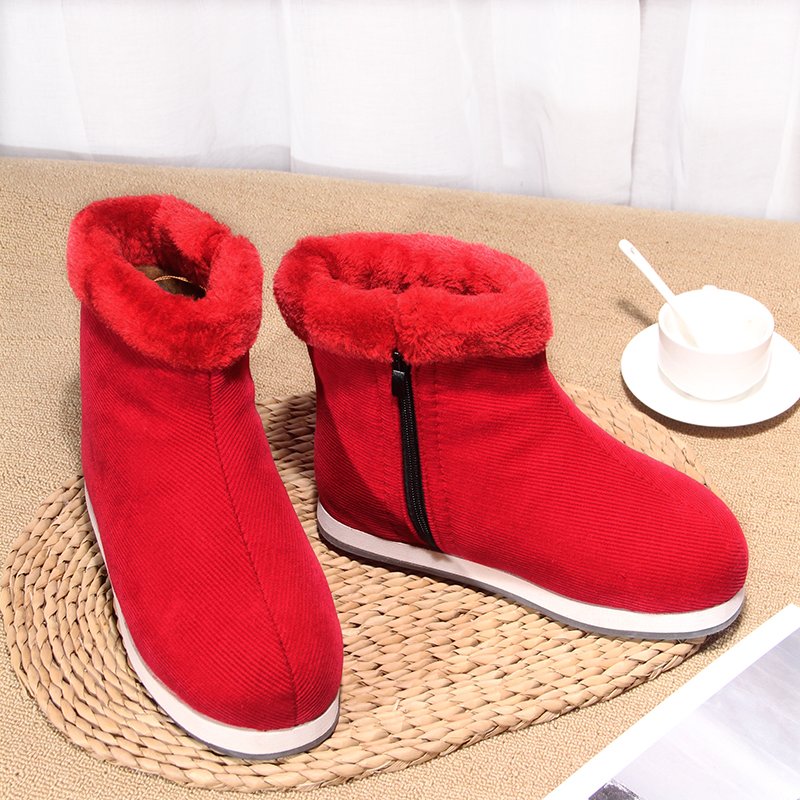 Handmade Cotton Shoes Woman High Drum New Warm Cotton Boots Mom Winter Plus Suede Thickened Old Beijing Non-slip Old Cotton Cloth Shoes