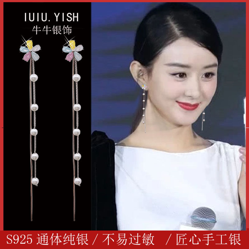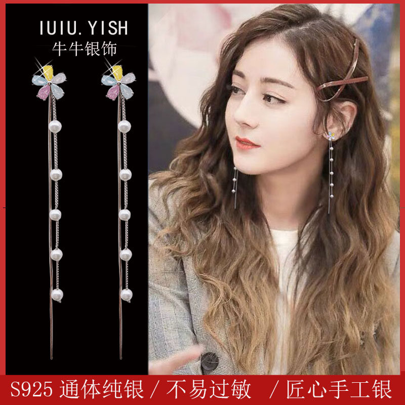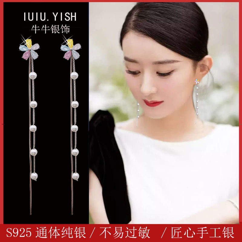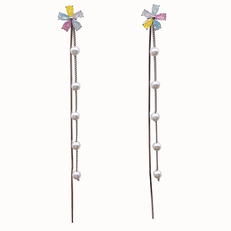 Multicolored zircon flowers + pearl tassels a pair Pink zircon flowers + pearl tassels a pair White zircon flowers + pearl tassels A pair Pearl stud earrings + pearl tassels a pair