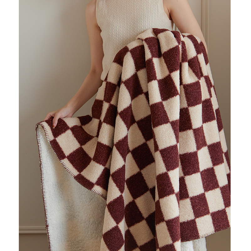 Checkerboard Teddy fleece blanket autumn and winter bedroom warm lamb fleece blanket office nap coral fleece blanket