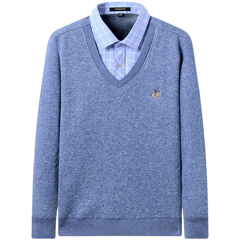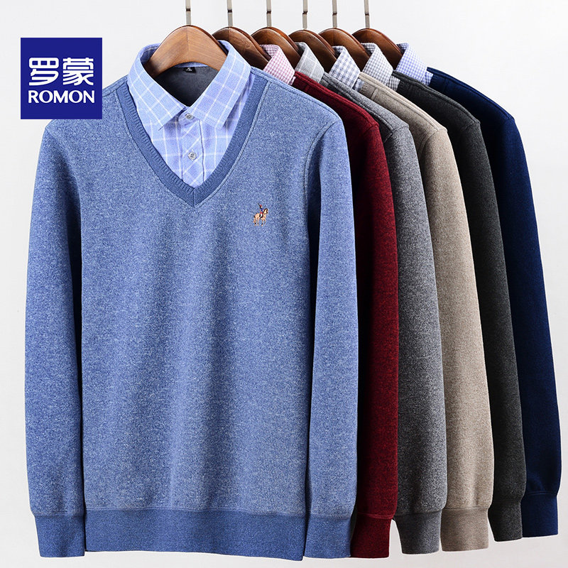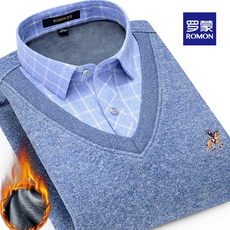 Romon Romonga Suede Warm Shirt Male Thickening Leave Two Middle Aged Casual Loose Large Size Winter Shirt