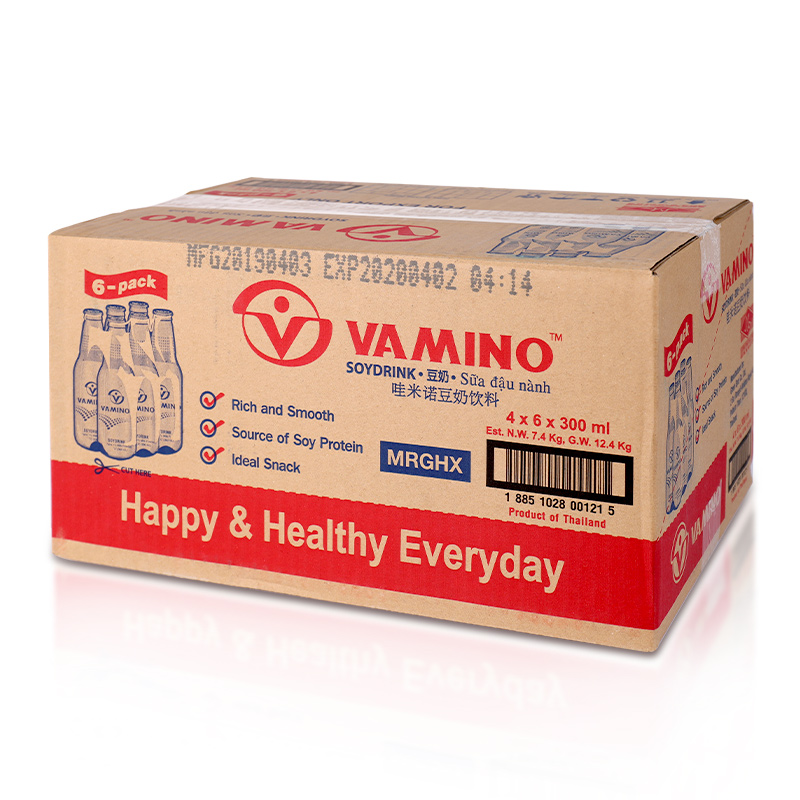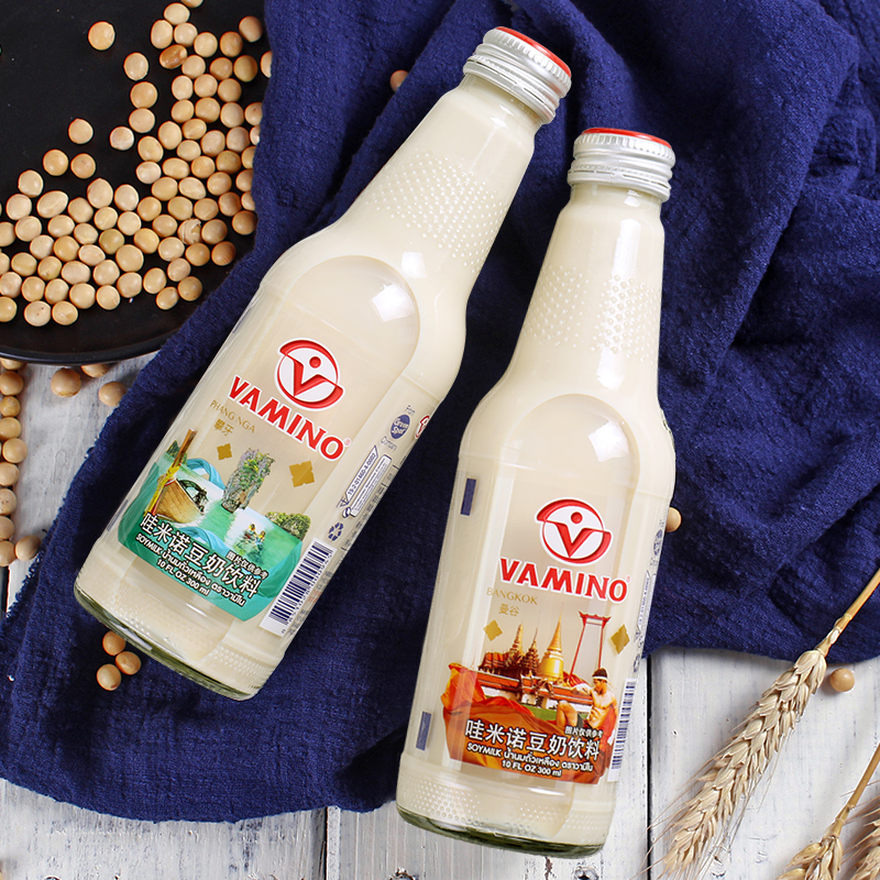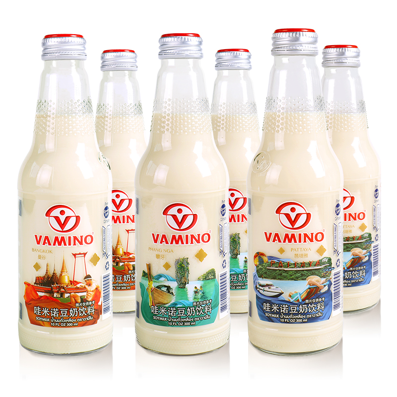 Wow Mino soy milk 300ml*24 bottles of Thai imported beverage VAMINO soy milk original glass bottle for breakfast