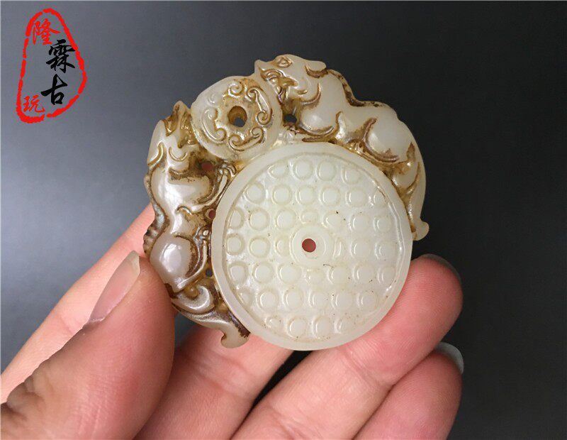 Antique jade antique antique white jade old jade high ancient jade old goods Pixiu Gudingbi brand pendant pendant jade pendant