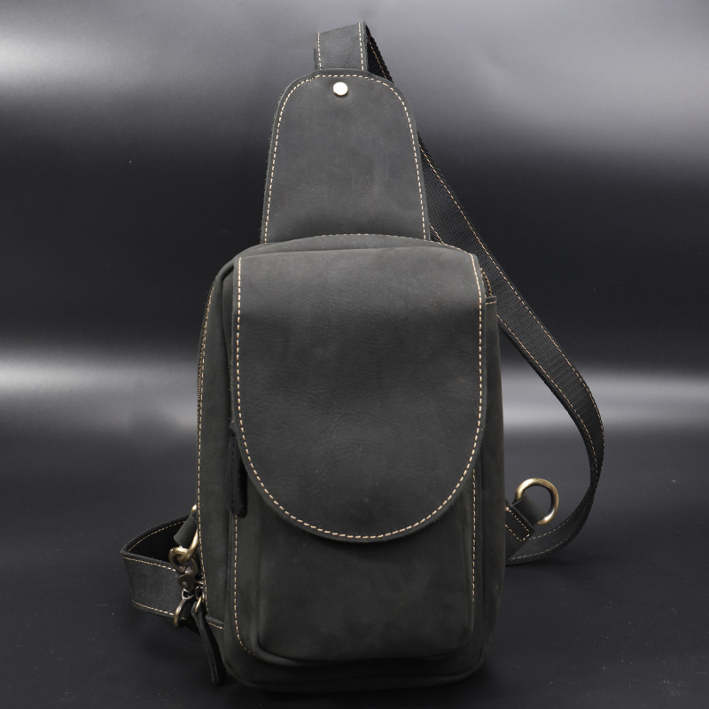Korean Version Tide Genuine Leather Men's Chest Bag Fashion Retro Crazy Horse Leather Chest Front Baotou Layer Bull Leather Sport Single Shoulder Inclined Satchel Bag